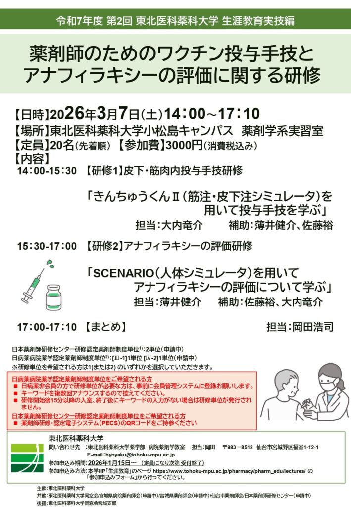 - 2025年度日本女性薬剤師会通信教育講座 宮城県女性薬剤師会スクーリング 2026年3月8日